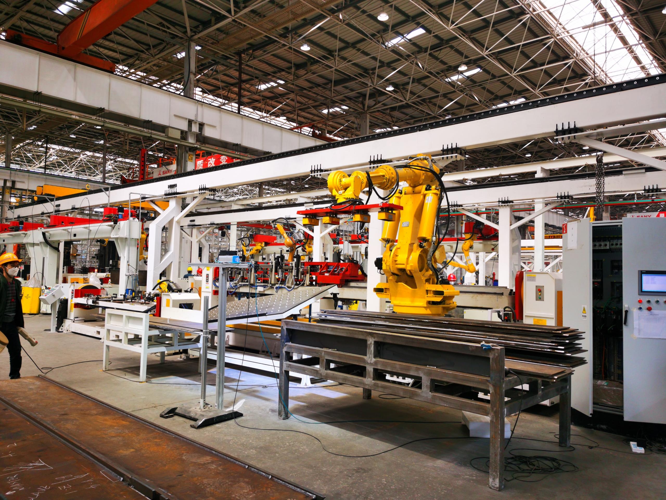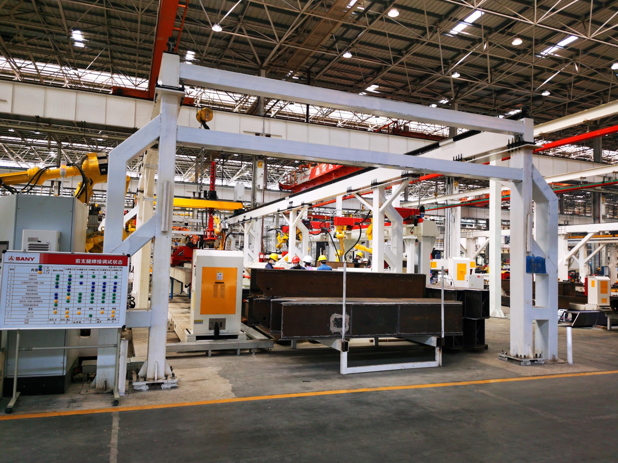 根據MES信息化需求,對中小板立庫提出需求,由AGV進行配送至上料工位,機器人進行自動上料,在分揀線上通過視覺比照、二維碼識別等技術手段,將泵車生產所需的各種型號工件進行分類,機器人下料抓取入框,然后由AGV小車配送至各需求工位。